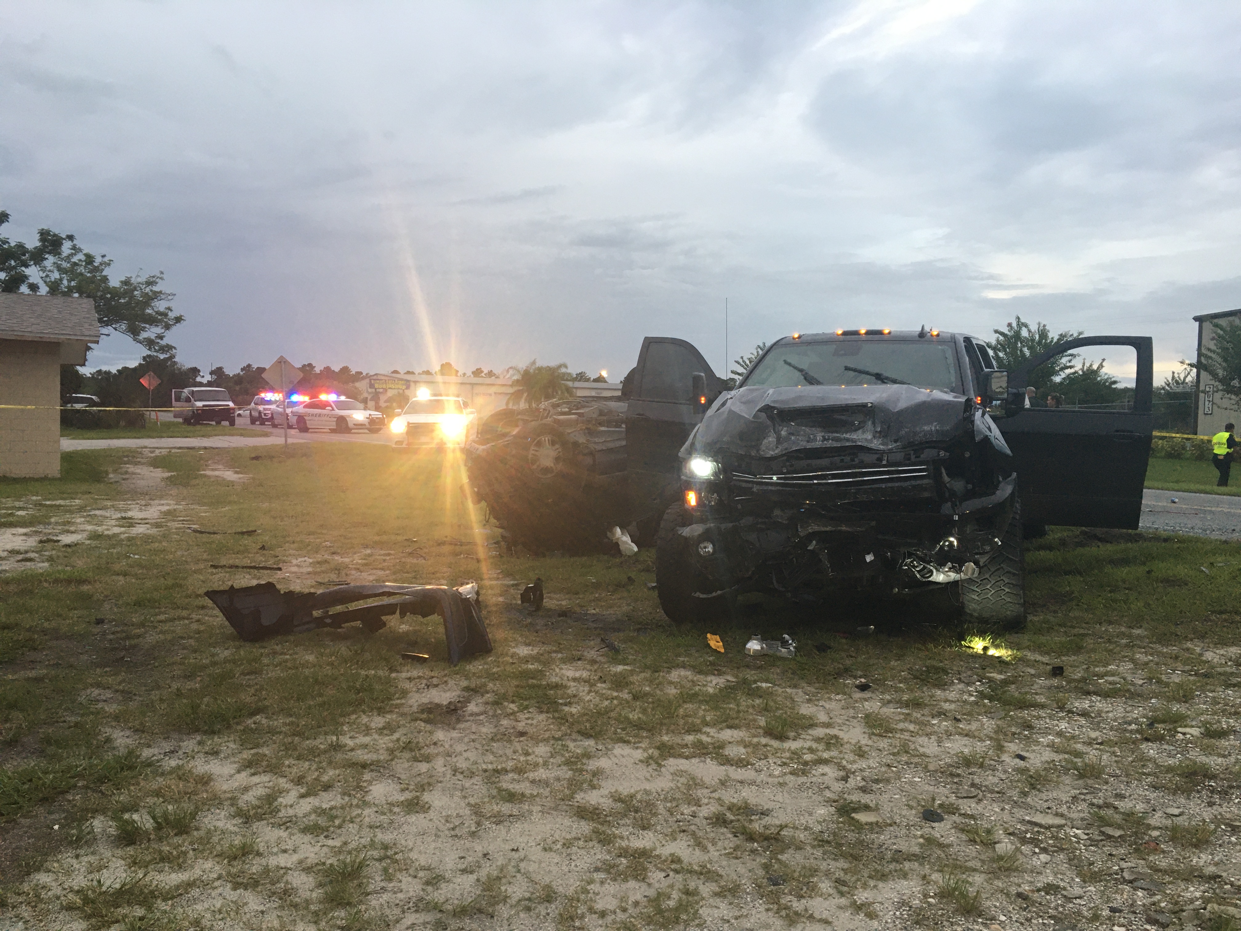 The at-fault vehicle was a 2019, black Chevrolet Silverado Pick-up truck driven by 36 year-old George Pizano, Jr. of Bartow. A 10 year-old child was a passenger in the vehicle. Neither Pizano nor the child were wearing seatbelts. Neither suffered serious injuries.